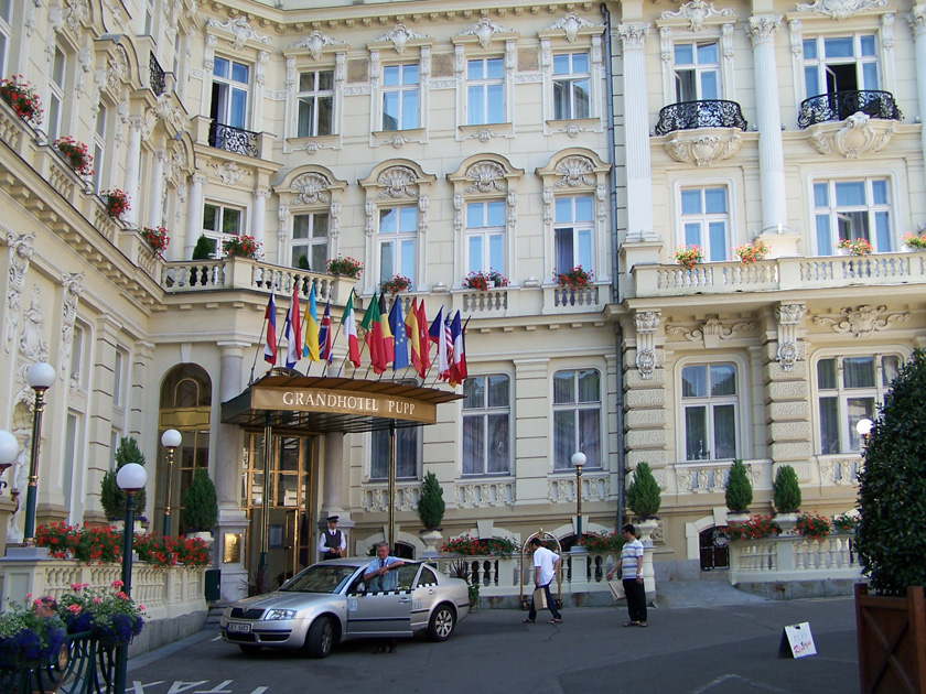 Ausgerüstet mit diesem Material konnte nun jeder, nachdem er mit dem Shuttlebus vom Busparkplatz bis zum Beginn der Kurzone beim Grandhotel Pupp befordert worden war, auf eigene Faust den Ort erkunden.