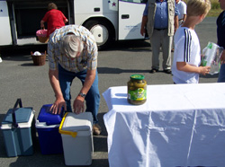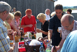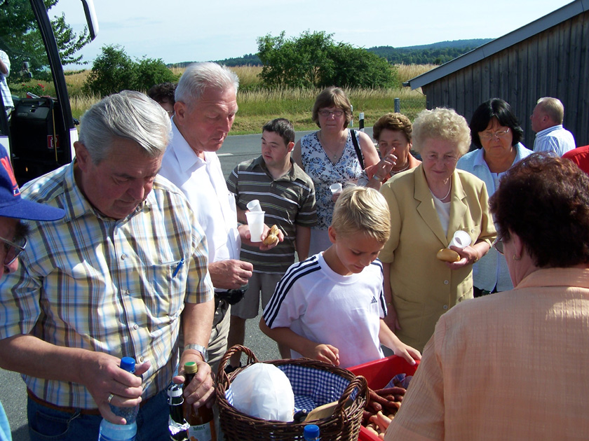 49 Mitglieder unserer Ortsgruppe und andere Freunde nahmen an der diesjährigen Omnibusfahrt teil. Der Busfahrer Reginald Adam von der Firma Buckreus brachte uns über Weismain und dem Kleinziegenfeldertal nach Hollfeld. Kurz vor dem Ort wurde Halt gemacht, um das Sektfrühstück, bestehend aus Limonade, Sekt und Selterswasser, sowie dreierlei Wurstsorten, Partiebrötchen, Semmeln und Graubrot einzunehmen. Als Nachspeise gab es Gummibärchen.