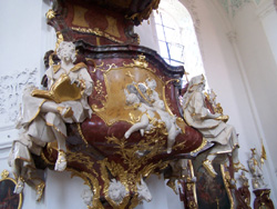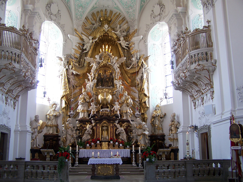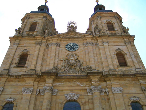Vor der Basilika haben wir einen gigantischen Blick auf das Portal. Die Wallfahrtskirche mit Franziskanerkloster wurde 1730-1739 nach Plänen von Balthasar Neumann erbaut