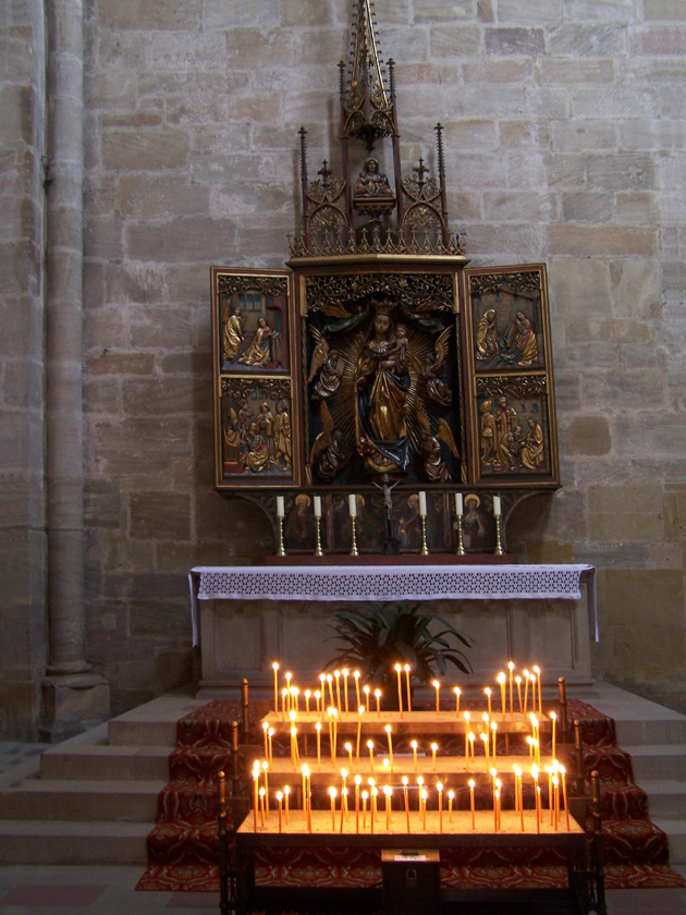 Der Dom jedefalls beinhaltet viele sehenswerte Schätze. So findet man hier den Bamberger Reiter, das Grab von Kaiser Heinrich II und Kaiserin Kunigunde, die Krypta, den Radleuchter im Westchor (Peterschor) und einer Orgel an der Nordwand des Hauptschiffes, die seit dem Jahr 1415 dort installiert wurde.