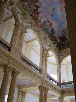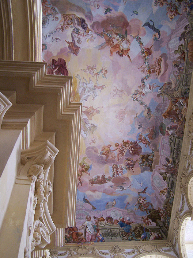 Nach zweistündigem Aufenthalt fuhren wir weiter nach Pommersfelden. Dort nahmen wir an einer Besichtigung des Schlosses Weißenstein teil. Zwischenzeitlich änderte sich leider das Wetter zum Schlechteren.