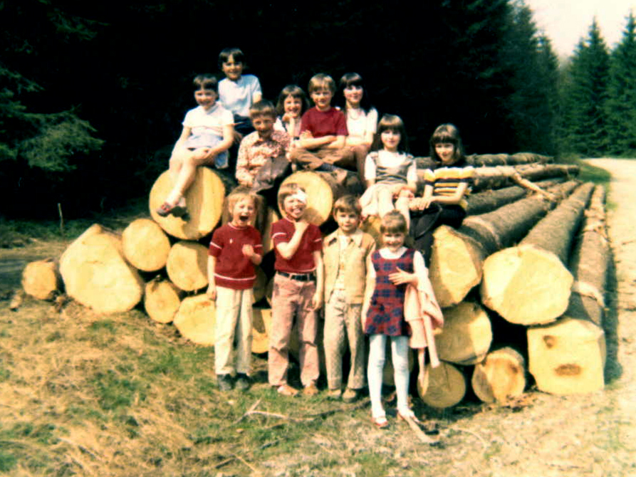 Die erste Wanderung am 01.Mai 1972 startet an der Hütte vom Berghof in Roßlach.