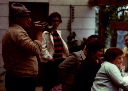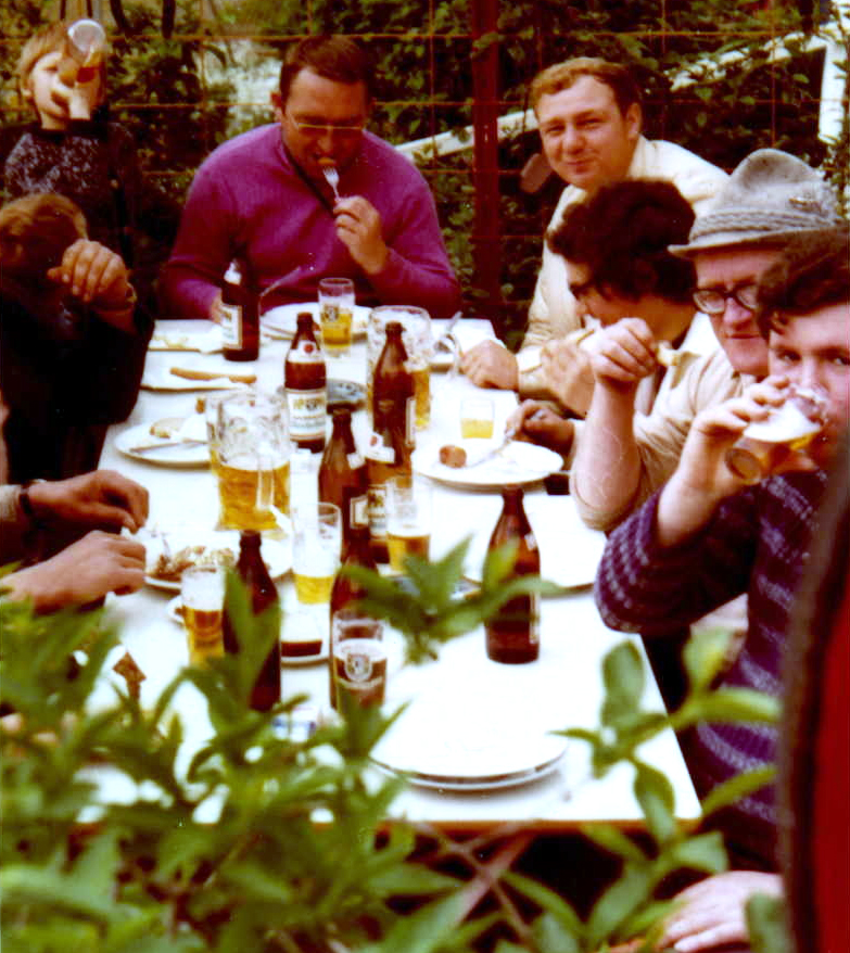 Die von Konrad Schütz und Heinz Wich hergestellten Bratwürste werden billigst auf dem Rost gebraten und mit einem 30 Liter Fässchen verzehrt. Der Tag wird durch Heiterkeit und Frohsinn durch Gesang und Musizieren mit Heinz Wich am Akkordeon bis gegen 22:30 Uhr abgerundet.
