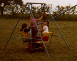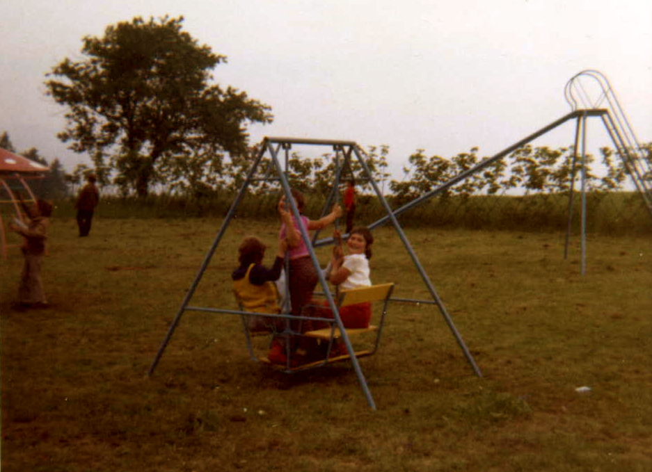 Die Kinder nehmen sofort die dort aufgestellten Angebote des Spielplatzes war und vergnügen sich damit.