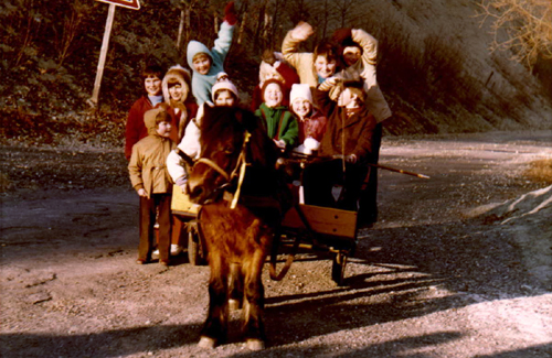 Neunzehn Erwachsene und elf Kinder nahmen an dieser Silvester-Halbtagswanderung teil. Schon zu Beginn gibt es ein großes Hallo, als Wanderfreund Walter Schmidt mit Pony und Wagen auftaucht. Vor allem die Kinder haben das Gefährt ständig in Beleg genommen.