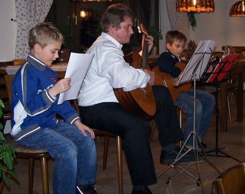 Michael Wich trug das Gedicht "Schenken" vor. Regina Geiger bot die Geschichte "Lagerweihnacht" dar. Johannes Wich las das Gedicht "Weihnachtsgrüße". Sebastian Wich sang, begleitet von Michael Wich, das Lied "O Tannenbaum". Reinhold Geiger trug das Gedicht "Weihnachtszeit" vor. Ingrid Wich erzählte die Geschichte "Einsam am Heiligen Abend". Sebastian Wich las das Gedicht "Vom Christkind". Johannes Wich und Michael Wich spielten ein Menuett auf ihren Gitarren.
